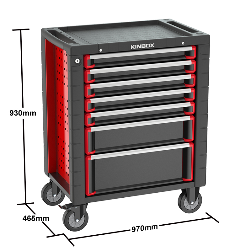 Mobility is integral to our tool cart. It is designed with four smoothly functioning wheels, allowing for easy maneuverability around your workspace. The wheels come equipped with parking brakes for secure positioning when necessary, ensuring that flexibility and stability go hand in hand.
